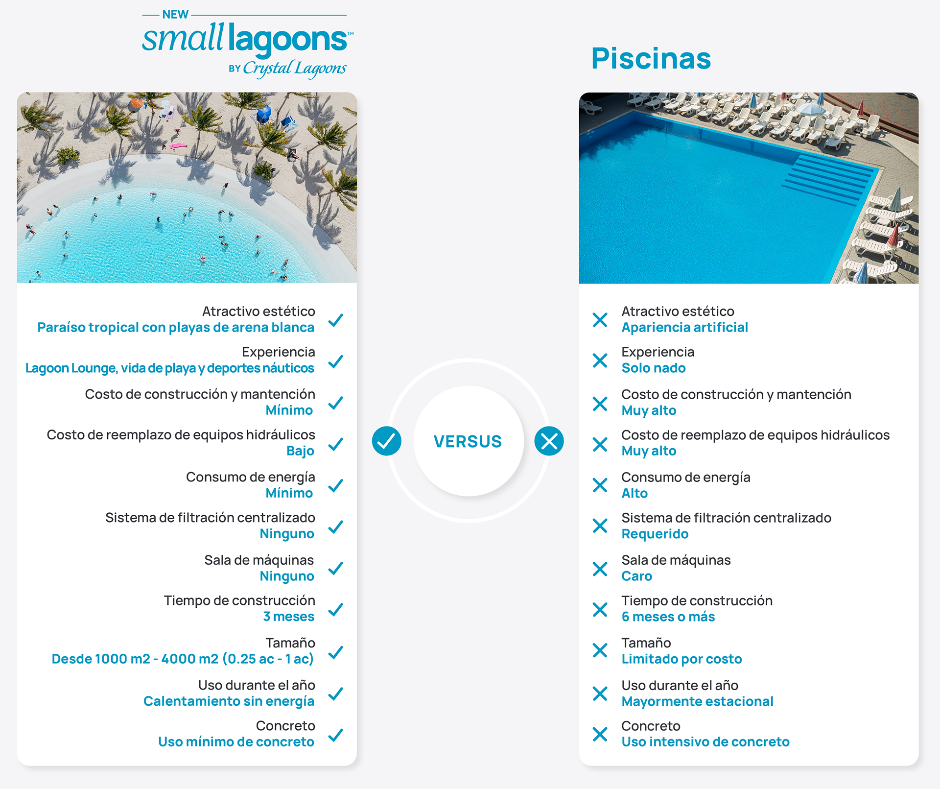 Small Lagoons by Crystal Lagoons™ tienen un costo de construcción hasta 4 veces menor que una piscina del mismo tamaño.