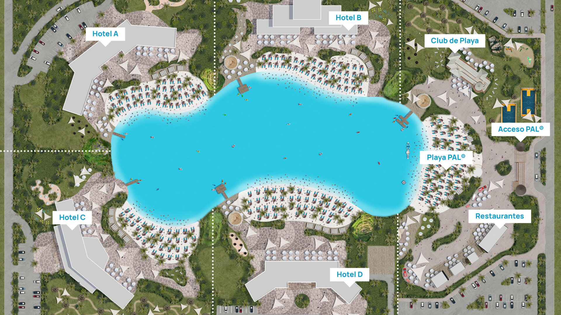 Los proyectos Public Access Lagoons® (también conocidos como desarrollos PAL®) son un concepto patentado revolucionario que crea el negocio más rentable llevando la vida de playa y los centros de actividades más hermosos a las ciudades. Estos desarrollos, generan diversas fuentes de ingresos, incluyendo venta de tickets, deportes acuáticos, restaurantes, retail, y eventos bajo carpas durante todo el año, tales como conciertos, encuentros corporativos y matrimonios. El centro de cada uno de estos proyectos PAL® es una laguna de agua turquesa rodeada por playas de arena blanca, ofreciendo una experiencia tropical sin comparación.