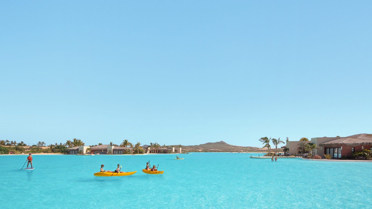 El tamaño y la profundidad de las lagunas de Crystal Lagoons las hacen adecuadas para una amplia variedad de actividades acuáticas, como natación, kayak y paddleboard.”